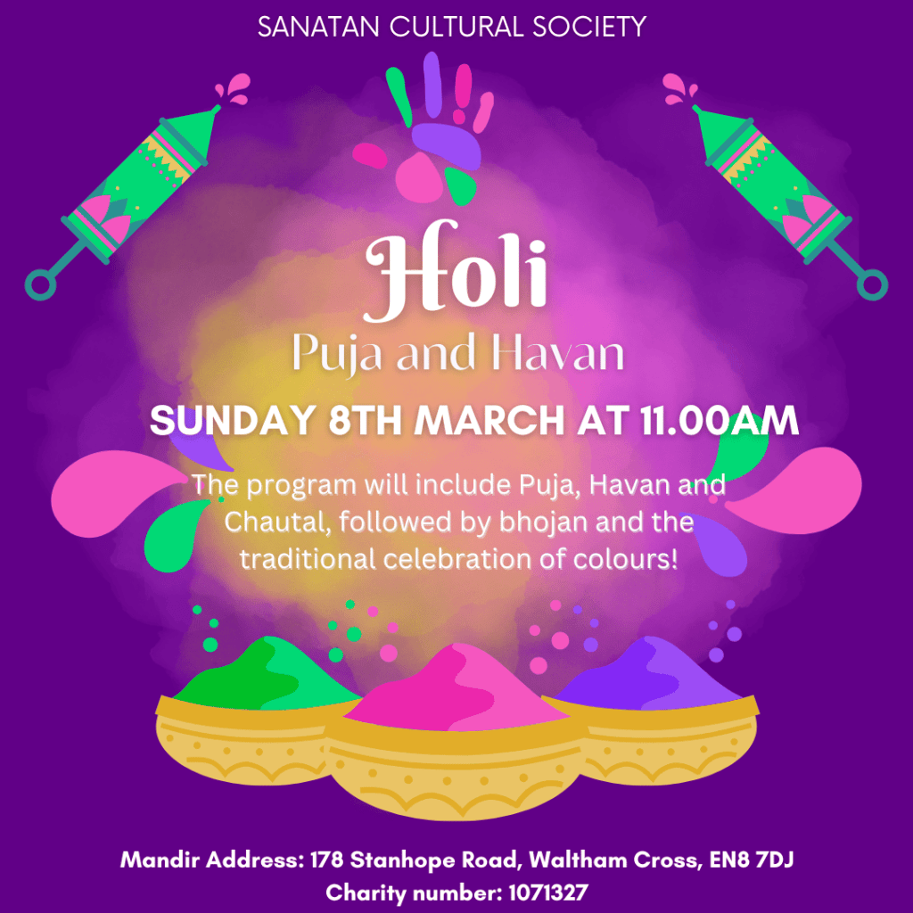 Mandir Address: Shri Satyanarayan Mandir, 178 Stanhope Road, Waltham Cross, EN8 7DJ